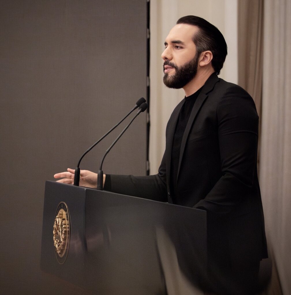 Nayib Bukele, reelegido en 2024, mantiene un modelo político que combina conservadurismo social, populismo autoritario y pragmatismo económico, con altos niveles de popularidad.